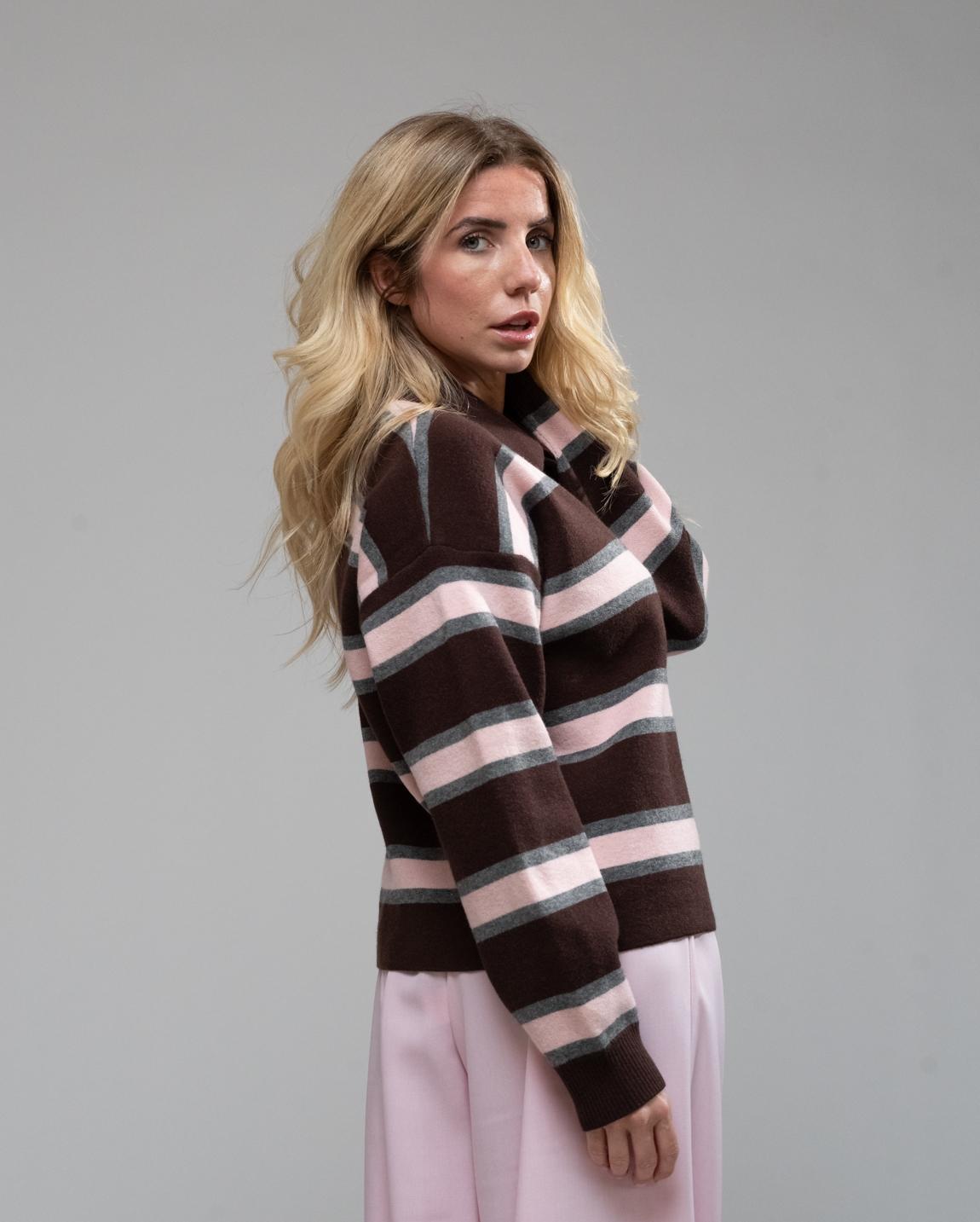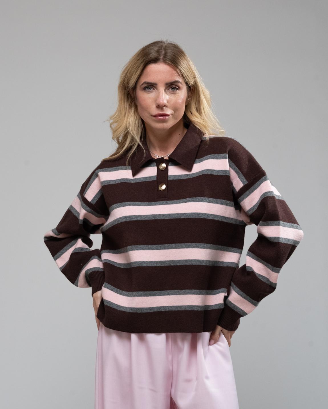 Polo righe choco grey